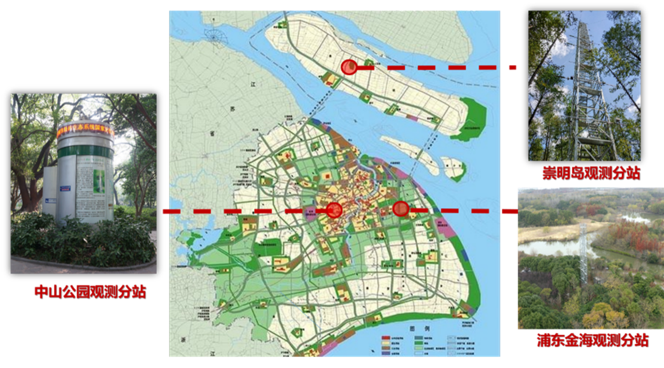 上海城市森林生态站在中山公园、外环林带和崇明岛建有综合观测分站,形成中心城区-近郊-远郊梯度观测;配有气象要素综合观测系统、森林环境空气质量监测系统、开路涡动通量观测系统、二氧化碳水汽廓线系统、大孔径闪烁观测系统、土壤蒸渗系统、活体根系监测系统、全自动土壤碳氮转化定量测量系统,植物、土壤及水体样品检测体系等,设备总经费1500余万元,满足城市生态系统水、土、气、生等要素定位观测研究需求。