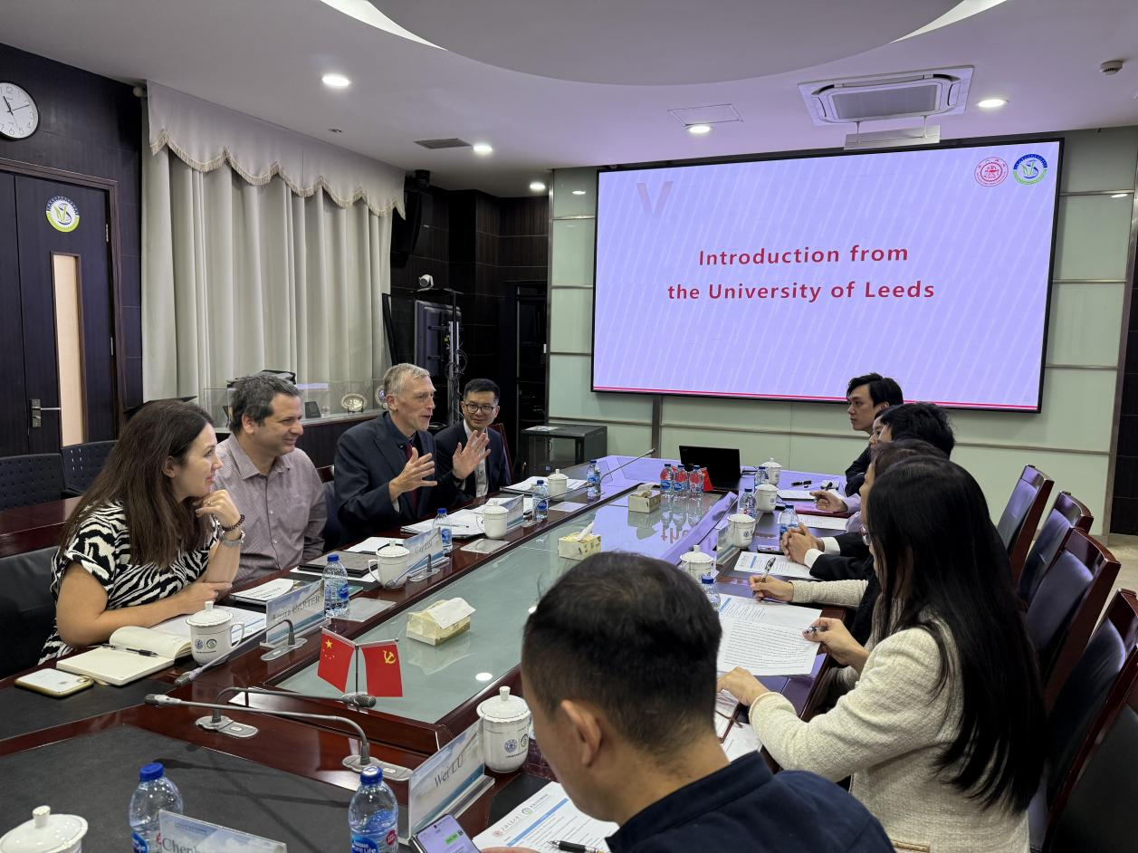 2024年11月7日上午,英国利兹大学生物科学学院协理副院长Ian Wood,环境学院协理副院长Guy Ziv,环境化学教授Laura Carter,国际科研与创新发展主任(亚洲)Hongsen Peng一行访问了Av解说 ,Av解说 及生命科学技术学院参与了此次交流。Av解说 院长助理高泓博,资源与环境系长聘教轨副教授陈钦程、副教授赵琦、博士后周睿人,食品科学与工程系副教授鲁伟,合作交流办公室王之皓、郝雨璇、白玲参会;生命科学与技术学院副院长李丹,研究员张晨虹,研究生教务夏娟,外事秘书李吴頔参会;转化医学院毕磊老师也参加了此次交流。会议由高泓博主持。